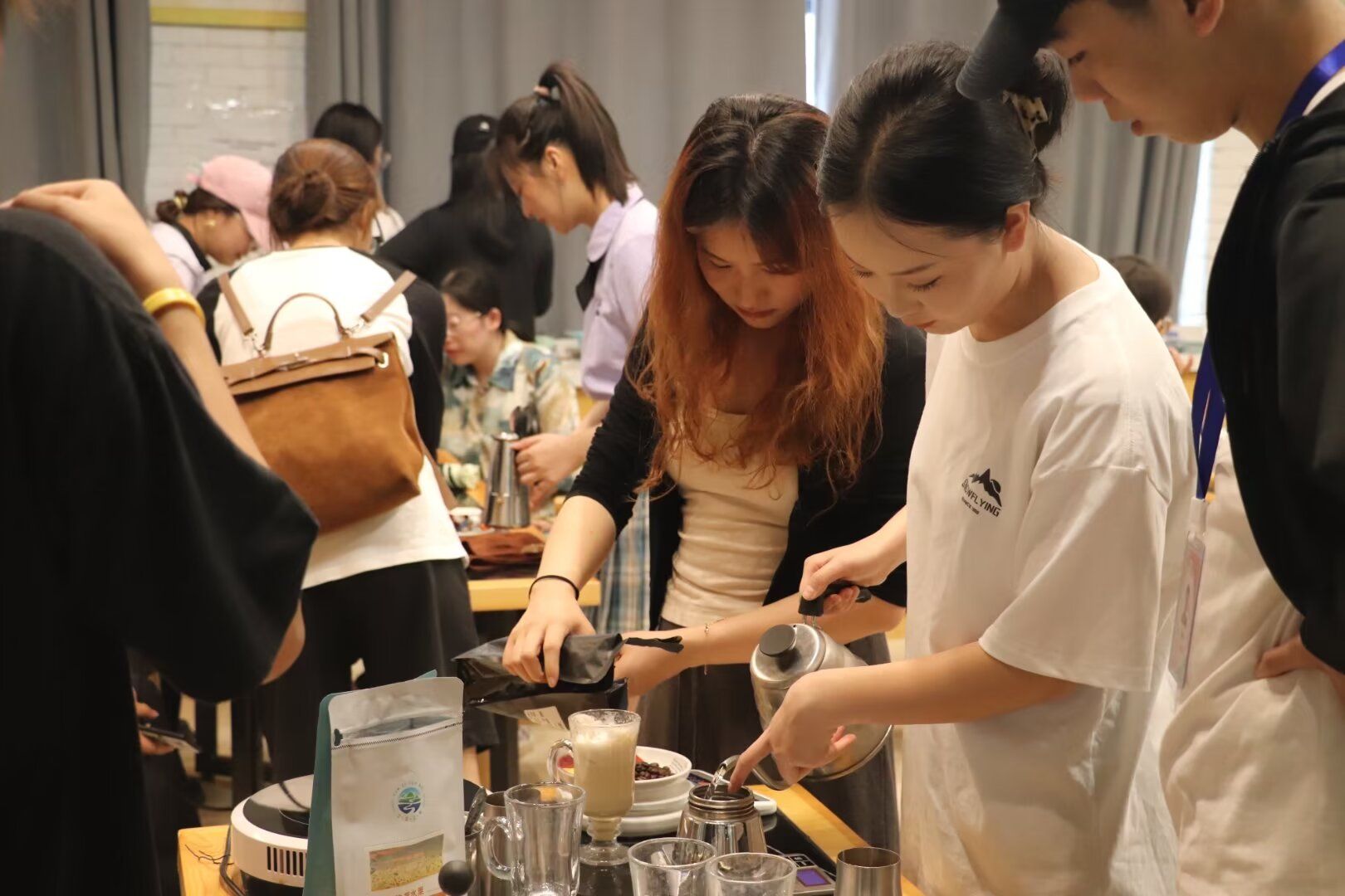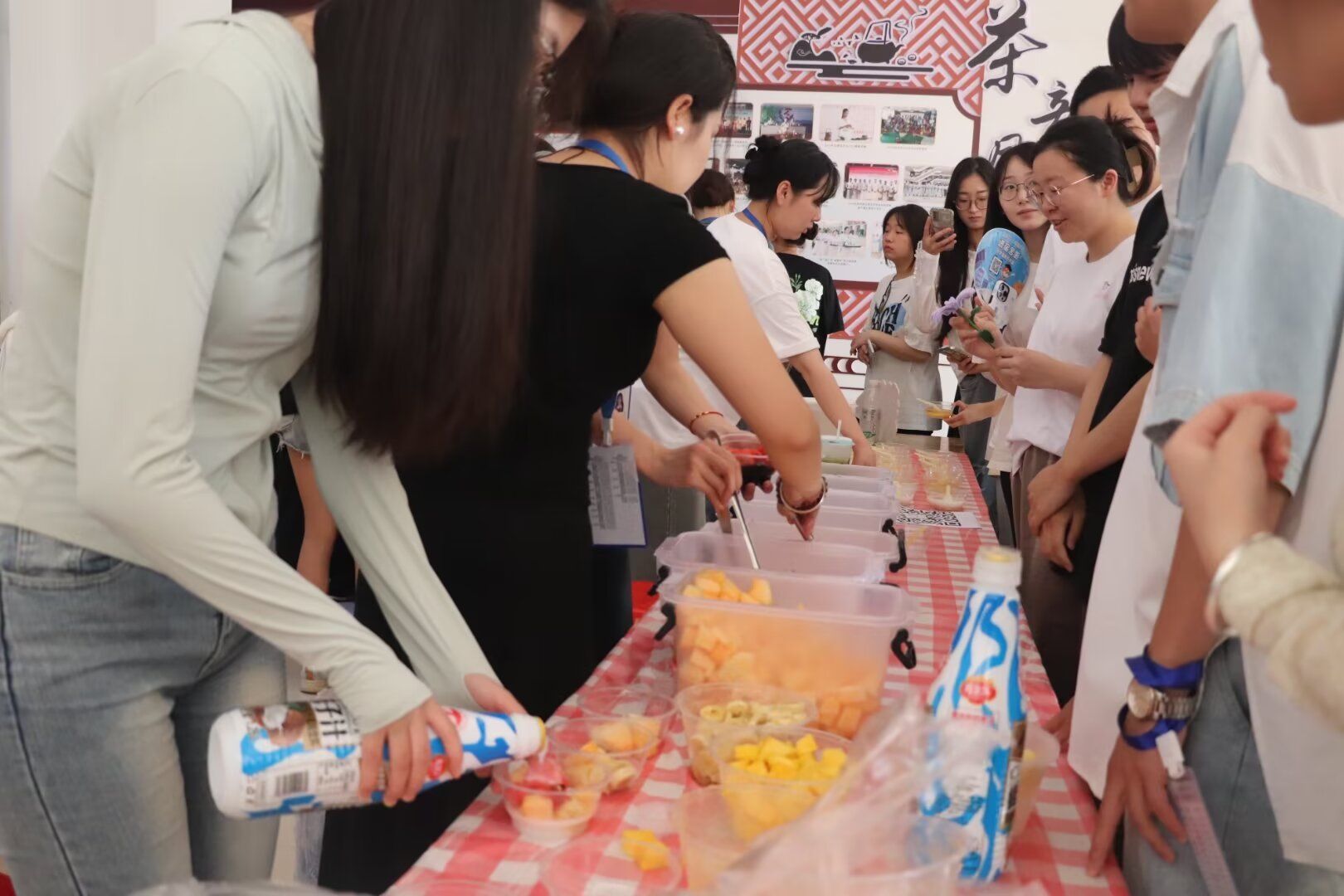 本次开幕式活动丰富多彩,共分为五大展区:第一个展区是航空专业技能展区——客舱体验。开放模拟机舱,邀请老师、同学们身临其境体验客舱礼仪与文化;第二个展区是旅游管理专业技能展区,这里大家能够体验到亲手绘制茶、咖啡、调酒的乐趣。第三个展区是文化艺术体验区,此展区秉承以传承中华文化,提倡民俗文化精神,安排有传统剪纸、书法、扭扭棒盆栽制作、永生花胸针、钥匙扣diy、水拓丝巾、水晶宝宝杯、打卡墙等体验环节,师生在制作体验的过程中,同时增强了对中国传统文化及民俗艺术的认同感和自豪感。第四个展区是文创产品展示区,为了深入推进非物质文化遗产保护,传承中华民族生生不息的优秀传统文化,非遗工坊给大家准备了制作灯笼、同心结、投壶等活动。同时,公司大创中心呈现多种文创产品,供大家参观。第五个展区是美食文化体验区,分别有制作冰糖葫芦、糖画、糖水、水果捞和冰粉、手打柠檬茶、寿司等体验区,大家不仅可以品尝传统美食还可以体验美食的制作过程。