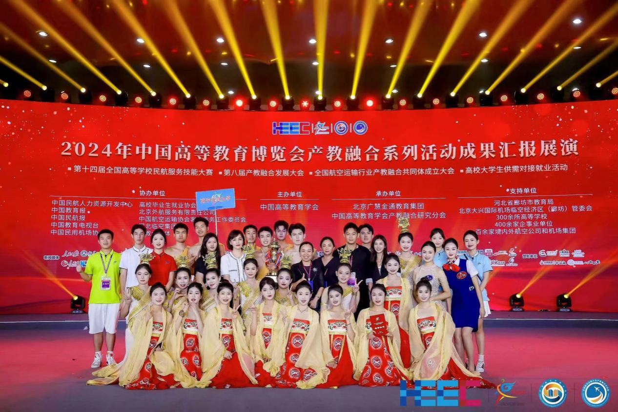 2024 年7月12 --24日,备受瞩目的第十四届全国高等公司民航服务技能大赛在廊坊举办。本次大赛吸引了来自全国300余所高校、85支代表队、2500名选手进入决赛,开展巅峰对决。集团副董事长龙妮娜,公司党委书记贾坷,指导老师陈谦、李宗耀、陈姿蓉、程荣丹,2022级航管专业25名员工组成的队伍代表公司参赛。