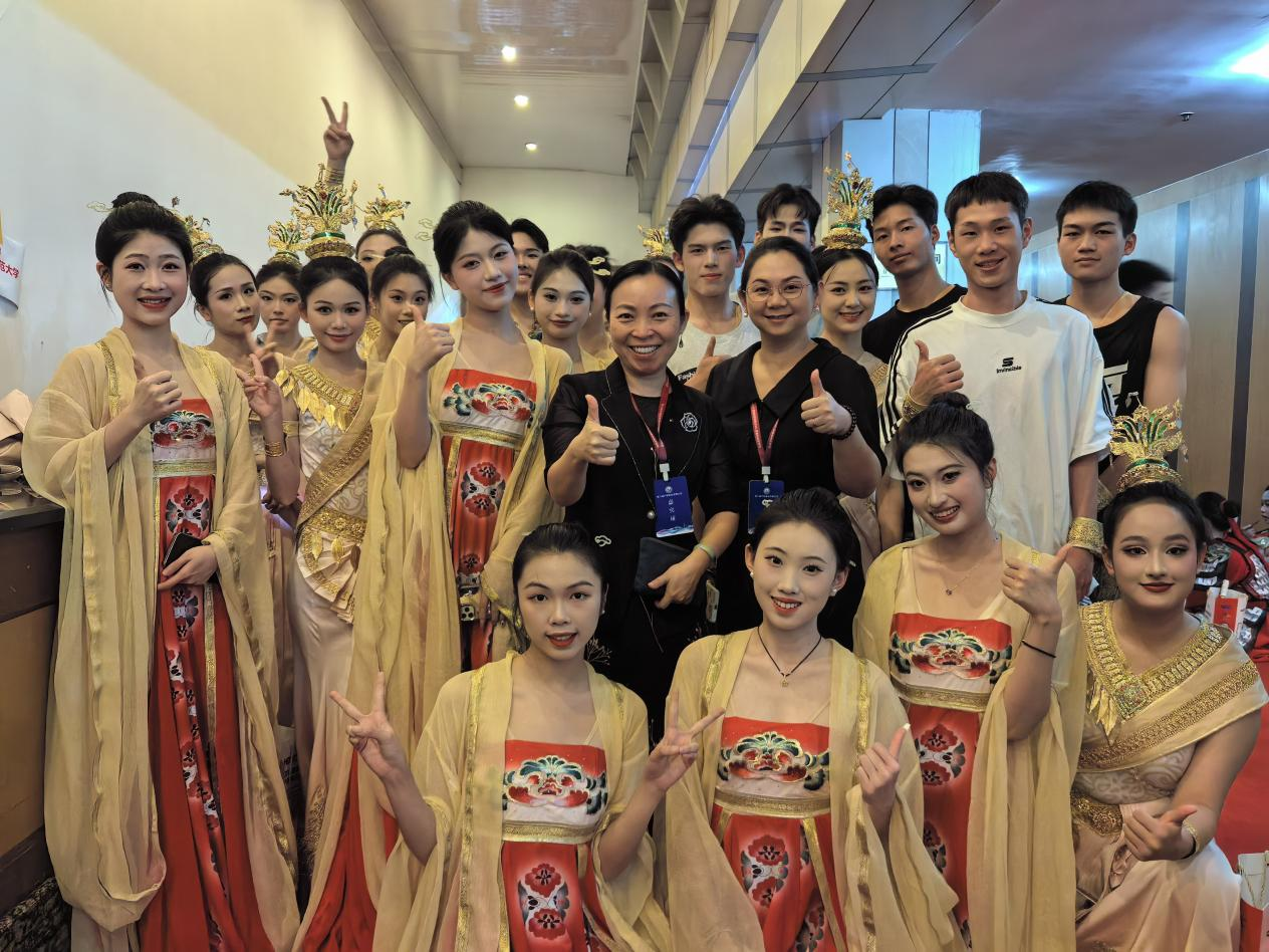 本次大赛从民航服务形象与礼仪、民航知识与英语、民航安全服务技能、团体表演四个赛项展开团体赛的竞技。太阳成tyc33455ccwww高度重视,经过层层选拔,专业老师进行一个多月的专业技能培训指导和赛前模拟来帮助参赛学子能在比赛中取得佳绩。在团体表演赛中,舞蹈队的25名员工精彩演绎舞蹈作品《缅花·盛唐》,展现中国唐朝传统舞蹈与缅甸传统舞蹈的交相融合,体现中国大唐盛世的境况;在民航服务形象与礼仪比赛中,公司参赛队伍通过舞蹈和走秀的方式主要展现东南亚文化和岭南文化的交流,最终公司有9名选手晋级;在民航知识与英语、民航安全服务技能比拼上,选手们使出浑身解数,用扎实的理论知识、精湛的技能水平和专业的礼仪形象诠释了“匠心筑梦新时代、精技强能向未来”的大赛主题精神。