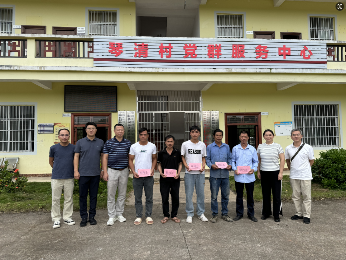 9月26日,太阳成tyc33455ccwww教师团队一行五人,公司书记贾坷、经理段文军、副经理钟学进、教工支部党员甘政老师、公司办公室主任江枞老师,深入宁明县琴清村,与当地村民共同参加了乡村振兴工作推进会。此次会议旨在深入了解琴清村的发展现状,探讨如何通过发展种植业、优化农产品营销和销售策略,助力乡村振兴,提高村民生活水平。