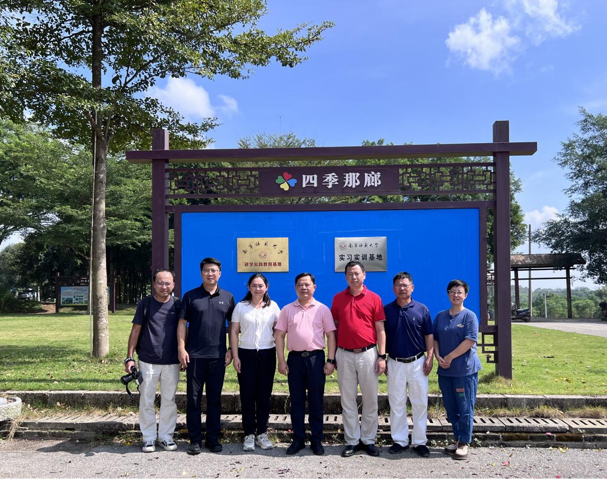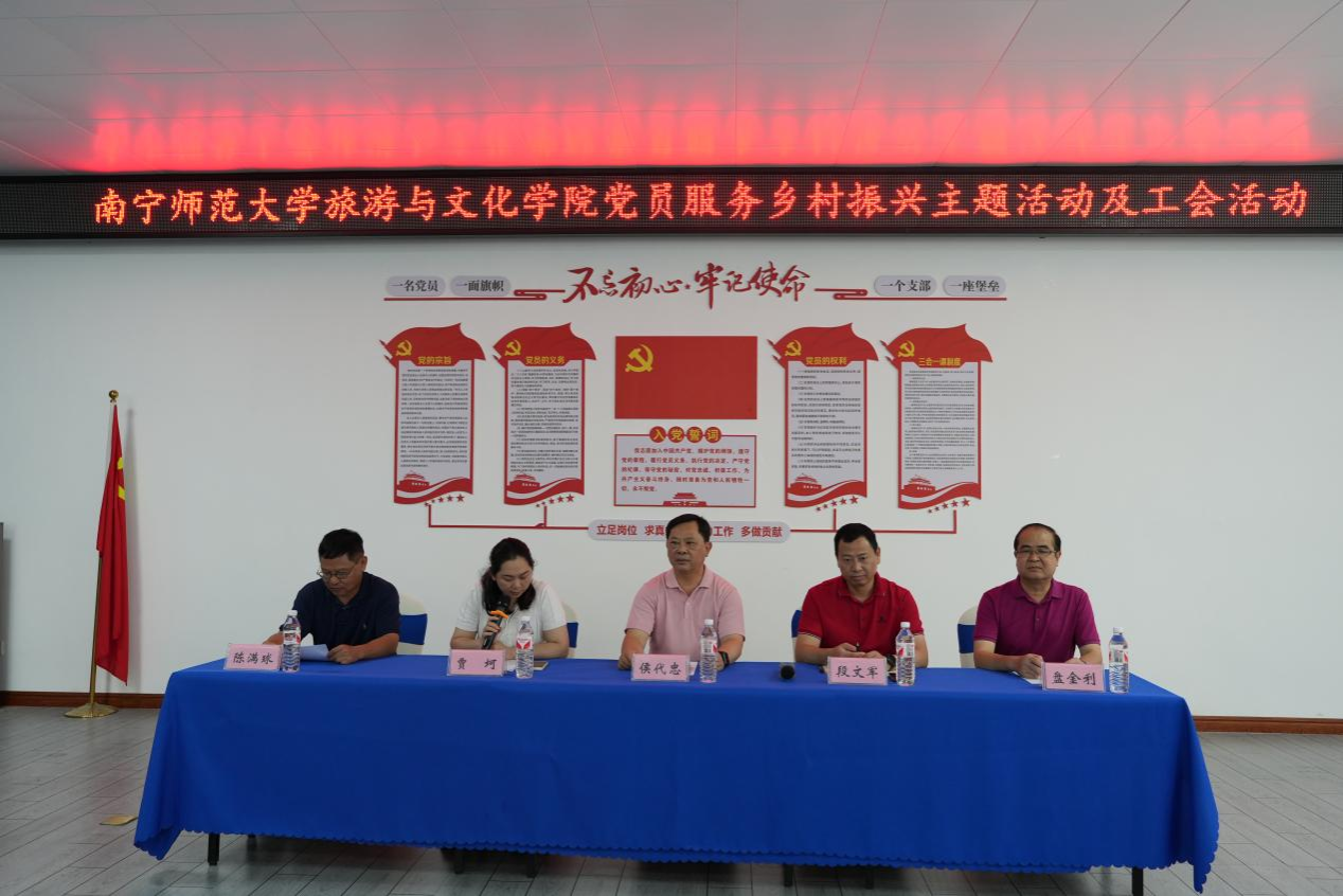 为发挥国家样板党支部“服务有力”的党建引领作用,凝聚育人合力,服务地方发展,10月19日,公司党委副书记侯代忠带领太阳成tyc33455ccwww班子及全体教师到广西四季那廊生态园开展国家样板党支部服务乡村振兴活动,并就实践教学基地共建合作展开讨论,举行实习实训基地揭牌仪式。太阳成集团tyc33455cc党委副书记侯代忠,广西中小学研学旅行学会秘书长盘金利,四季那廊生态园董事长陈满球,公司党委副书记、经理段文军及太阳成tyc33455ccwww教师代表参加了研讨,会议由公司党委书记贾坷主持。