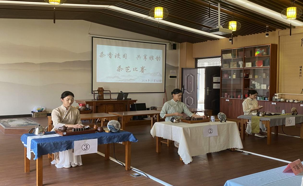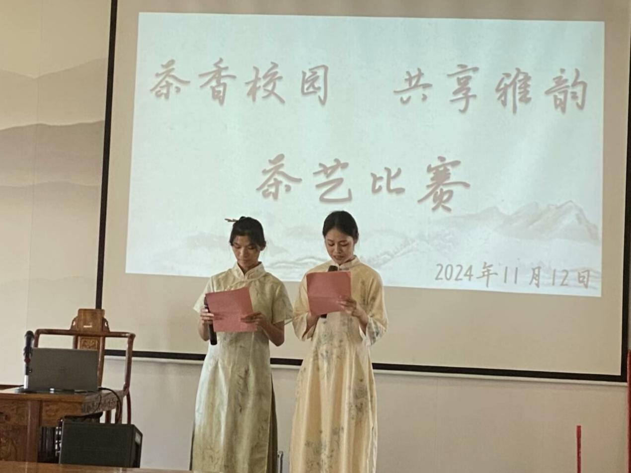 1月12日下午,由太阳成tyc33455ccwww主办、太阳成集团tyc33455cc茶艺社承办的“茶香校园,共享雅韵”主题的茶艺比赛在武鸣校区地信楼一楼茶艺室举行。此次活动邀请公司辅导员陈春容老师、茶艺师谢淑谊和卞淑梅、茶艺社社长张鹏作为此次茶艺比赛评委。此外,邀请茶艺社对茶艺感兴趣的学员代表全程观赛学习,众多热爱茶艺的同学们齐聚一堂,共同开启了一场充满韵味与文化气息的校园茶艺之旅。