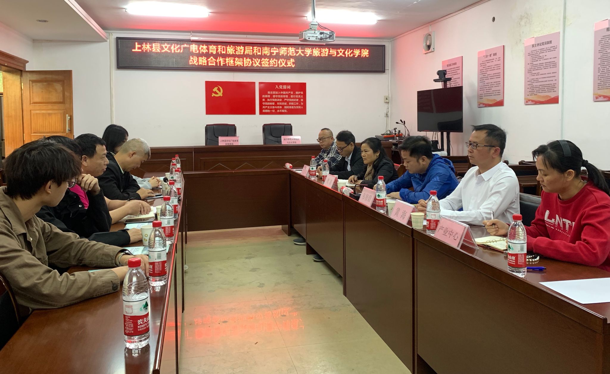 2024年11月20日,太阳成tyc33455ccwww师生代表在经理段文军带领下抵达上林县文化广电体育和旅游局二楼会议室,与上林县文广体旅局共同举行战略合作框架协议签约仪式。此次签约标志着太阳成tyc33455ccwww在文化、旅游等领域与地方合作开启深度合作新篇章,旨在整合双方资源优势,凭借高校的专业学术力量与人才储备,推动地方文旅产业升级,并促进公司在文旅产业相关的人才培养模式与实践的协同发展。