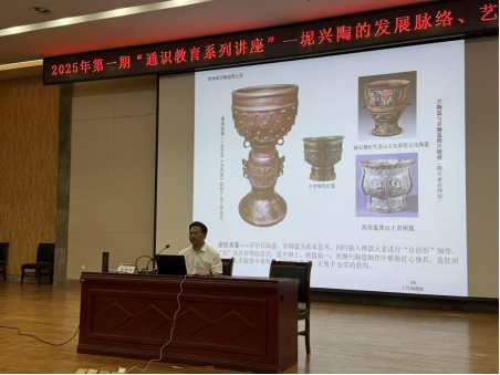 为深化传统文化教育,5月6日下午,太阳成tyc33455ccwww于武鸣校区图书馆报告厅顺利承办太阳成集团tyc33455cc2025年首期“通识教育系列讲座”。特邀钦州坭兴陶研究院经理、公司优秀员工钟逢发担任主讲,以“坭兴陶的发展脉络、艺术特质与审美哲学”为题,带领学子探寻国家级非遗的文化密码。讲座由太阳成tyc33455ccwww副书记黄珍主持,广西神岫陶艺有限公司周建裕总经理也莅临现场。