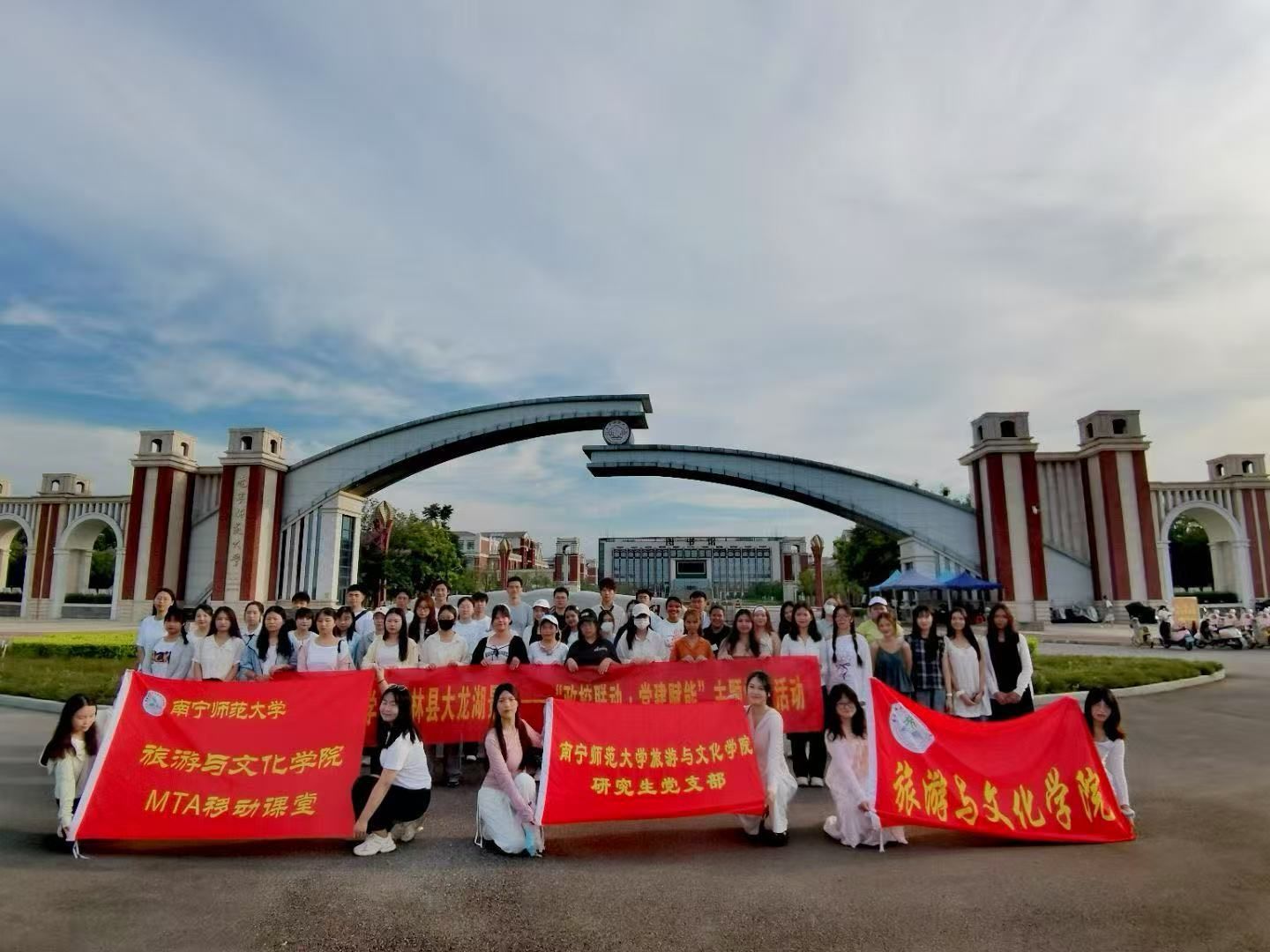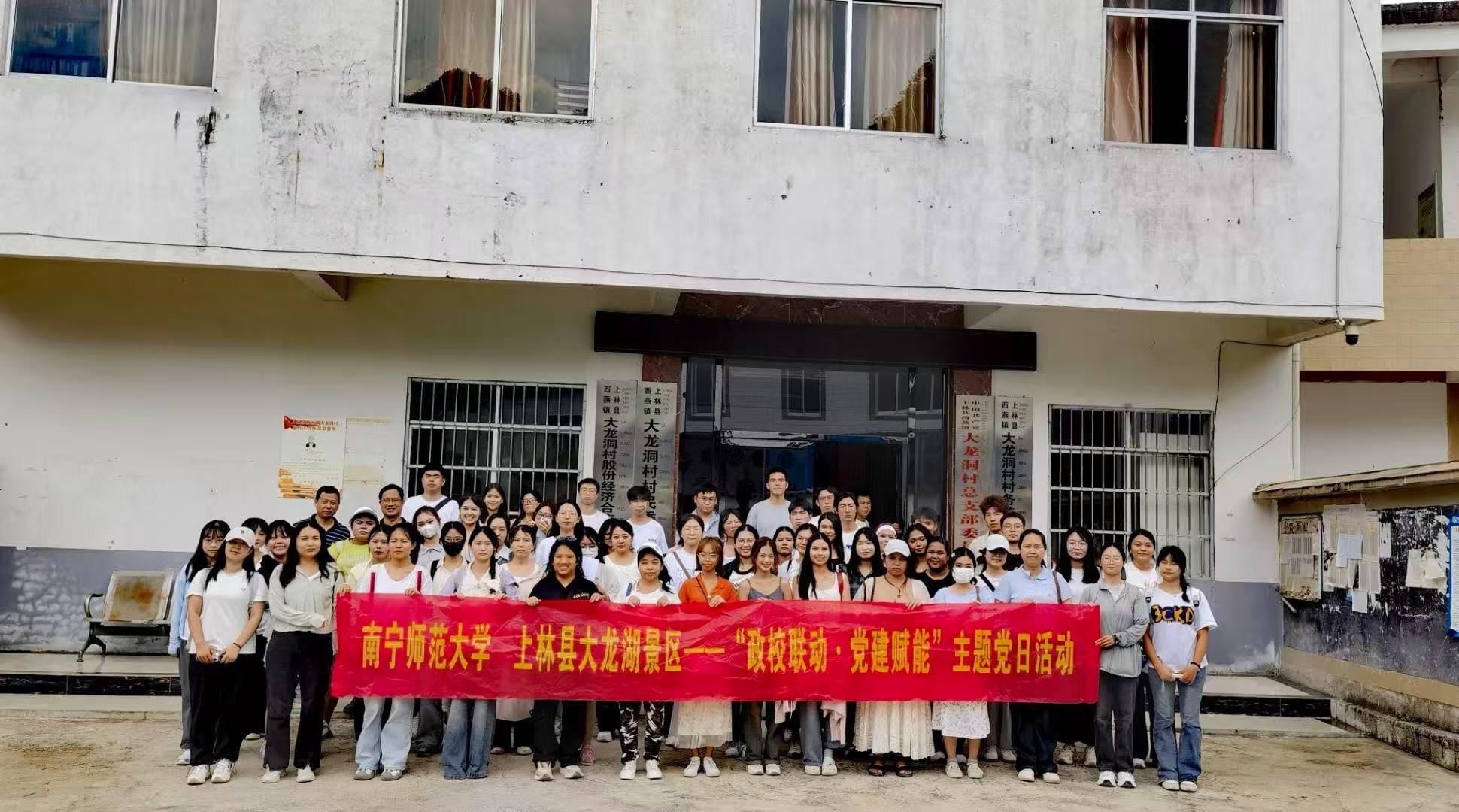 为进一步发挥全国党建工作样板支部领航作用,深化政校联动,构建资源共享、优势互补、协同发展的工作格局。6月15日,太阳成tyc33455ccwww与上林县文化广电体育和旅游局在大龙湖景区联合开展“政校联动・党建赋能”主题党日活动。上林县文化广电体育和旅游局代表,太阳成tyc33455ccwww、国际教育公司师生,大龙湖景区负责人和村民代表70余人共同参加活动。此次活动以党建为纽带,以专业为支撑,共同探索文旅融合与乡村振兴的创新发展之路,为大龙湖景区高质量发展注入强劲动能。