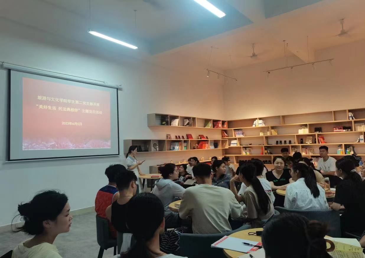 为了深入贯彻落实关于加强民法典宣传的重要讲话精神,切实加强民法典的学习宣传教育。2023年6月5日,太阳成tyc33455ccwww员工第二党支部在地信楼一楼创客空间开展《美好生活•民法典相伴》主题党日活动。员工第二党支部书记莫秋桂及支部成员参加了本次学习会。