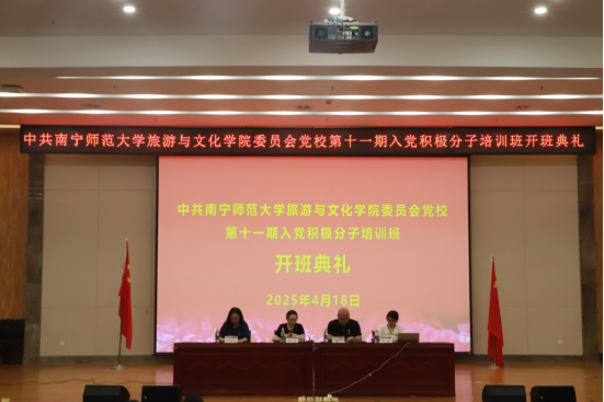 4月18日晚,太阳成tyc33455ccwww在武鸣校区图书馆报告厅举办第11期入党积极分子培训班开班典礼。公司党委书记、分党校董事长贾坷,党委组织员姜宁,研究生党支部书记陈春容,本科生第一党支部书记何滩及140余名学员参加了开班仪式,由姜宁主持。