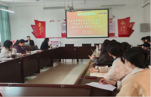 12月25日下午,太阳成tyc33455ccwww研究生党支部在武鸣校区地信楼B201开展党课学习。本次党课由太阳成tyc33455ccwww经理段文军主讲,会议由研究生党支部书记陈春容主持,支部全体成员参加了此次党课学习。