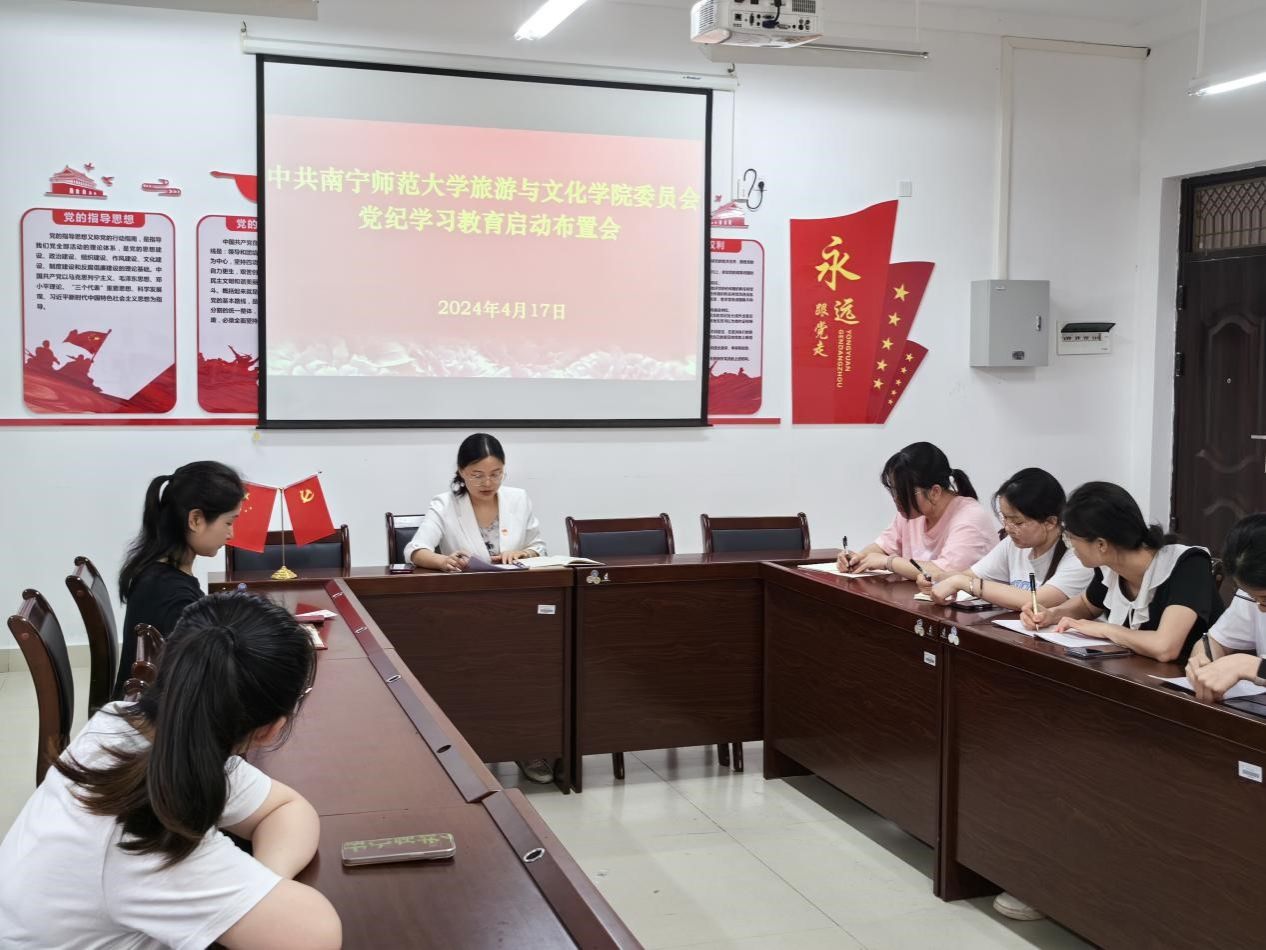 黄珍副书记强调这次党纪学习教育,是加强党的纪律建设、推动全面从严治党向纵深发展的重要举措。要坚持个人自学与集中学习相结合,组织党员特别是党员领导干部逐章逐条学、联系实际学、专题研讨学,真正使学习党纪的过程成为增强纪律意识、提高党性修养的过程,成为学方略、谋创新、抓落实的过程。黄珍副书记指出要做到党委带头学、党支部跟进学、党员对照深入学和纪律党课推动学相结合,党委领导班子成员开展2天党纪学习教学读书班,教工、员工党支部以“三会一课”、主题党日为依托,以学习《条例》为主题,通过交流研讨、案例教学、线上培训等方式组织党员认真学习,原原本本学习内容,联系实践推动工作,凝聚人心。全体党员要牢记党纪国法不可逾越,底线红线不可触碰,只有遵规守纪,才能方得始终。要巩固拓展好主题教育成果,通过党纪学习,扎实推动公司高质量发展,为广西旅游发展提供智力支持,同推动清廉公司建设取得更大成效,为教师教育国内一流、服务发展贡献卓著、辐射东盟影响广泛的高水平师范大学建设提供坚强保障。